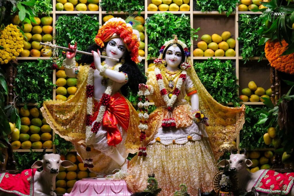 The highlight of this lecture was the various practical lessons from each episode, for eg, how people in various modes react to a devotee, how a child can hear while in the womb, how the most humble is the first to get mercy of the Lord and how Absolute truth is that which does not change with time and place and many others. Next day morning’s Bhagavatam lecture was given by H.G. BalGovind Prabhu who compared the pastime of Prahalad and Hiranyakashyapu to the good and bad tendencies within us and how to overcome them by taking shelter of ferociously beautiful Lord Narasimhadev. Evening H.G. Shri Keshav Prabhu emphasized how one can get mercy of Lord only through mercy of his devotee. H.G. Radheshyam Prabhu, our temple president, gave a powerful feast lecture on Sunday morning. He has been emphasizing in all his lectures throughout the week about the fact that Srila Prabhupada, our founder acharya followed the example of Prahalad Maharaj and therefore we must also do so. He also emphasized how Prahalad Maharaj perfectly epitomized the mood of a servant of Lord and although this mood is the common underlying foundation of all other rasas, it is most evident in behavior of Sri Prahalad, which is why it is of topmost significance to an aspiring devotee. He then went on to explain some of the teachings of Prahalad Maharaj, especially the fact that one need not work hard for one’s bodily maintenance as with little effort this is easily attained, but people work hard in this world to satisfy their greed. One must start devotional service unto Supreme Lord right in the childhood. He also explained based on Sri Prahalad’s instructions who is the person who is considered to be old. He described two categories of disciples- the shoukra (seminal succession) and shroutra (one who comes by hearing submissively from a guru). He ended the feast lecture by a powerful one hour kirtan before the deities. Evening Lord’s Salila Vihar (water sport) pastime was celebrated where Their Lordships were seated on an ornamented throne in a Kunj surrounded with water, mild drizzle and waterfall. H.G. Varadraj Prabhu concluded the lecture series on the same day evening in the midst of thousands of devotees who had assembled to take darshan on a Sunday evening, thus inspiring all to take up pure devotion like Sri Prahalad. One can pray to Lord Narasimha Dev on this auspicious day to guide all of us just like he guided Sri Prahalad to give us association of His pure devotee in whose shelter we may be masterfully guided to finally attain His Divine Lotus Feet.