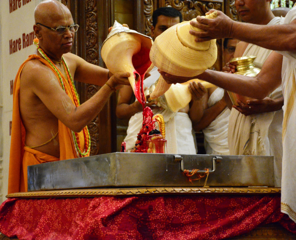 Krishna is not an option but He is like the ocean. To know this one must read Srimad Bhagavatam and its higher study Chaitanya Charitamrita. How can one even begin to swim if one leg is still on the shore? brahma-bhutah prasanatma, na socati na kanksati samah sarvesu bhutesu, mad-bhaktim labhate param. Of all attachments of this world, deep rooted consciousness of the opposite gender is the foremost, which cannot leave a person even at old age or death. That is why Srimad Bhagavatam, which describes the science of God, is not meant for the materialists. Unless such a materialist surrenders unto a perfected soul considering himself to be a fool helplessly bound in this material world, lives with such a perfected soul only to serve him leaving this artificial world for good and hears submissively from such a perfected soul, there is no escape. That is also the reason why the foremost devotee Prahalad heard Bhagavatam from ever liberated Narada Muni right while he was in the womb of his mother, where no material attachments can touch him. Thus he perfected his life by finally meeting the Supreme Lord face to face on the day of Narasimha Chaturdashi. Narasimha Chaturdashi has infinite significance in the life of an aspiring devotee. Pune temple celebrated this auspicious day by holding a three day special lecture series morning and evening by various senior devotees. H.G. Kadamba Krishna Prabhu started the series on the day of Narasimha Chaturdashi and discussed from Srimad Bhagavatam. He being greatly inspired by H.H. Radha Govind Maharaj, gave various deep technical insights into the pastime. Evening, after the Abhishek ceremony of Lord Narasimhadev, feast lecture was given by H.G. Sundershyam Prabhu who very graphically described the entire pastime of Prahalad and Hiranyakshyapu until appearance of Lord Narsimha Dev and Prahalad’s prayers thereafter.